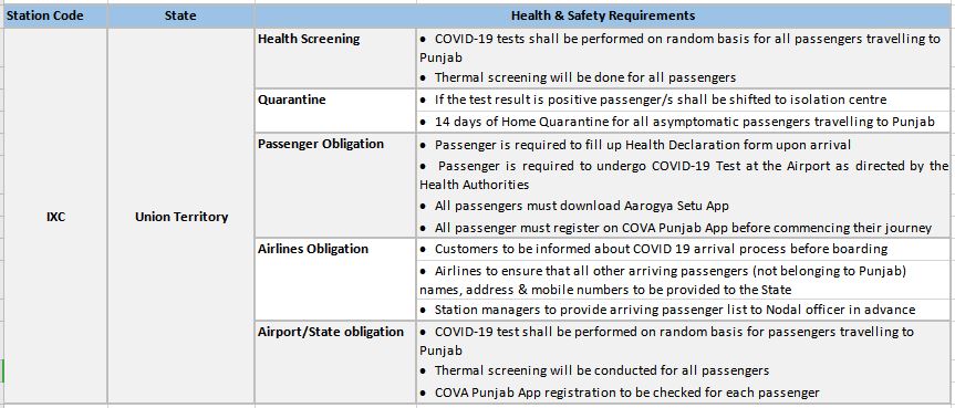 1. It is Mandatory for passengers arriving from NCR/DELHI, Kerala, Rajasthan, Gujarat & Goa to carry RT-PCR test report done not earlier than 72 hours Prior to departure.